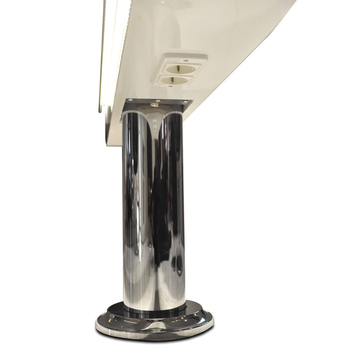 Island, 2 position styling unit with white lacquered frame and 4 integrated electrical sockets. Also available in wood finish, cinnamon elm, ref. Orme Cannelle T11, see Options below. Footrests not included.